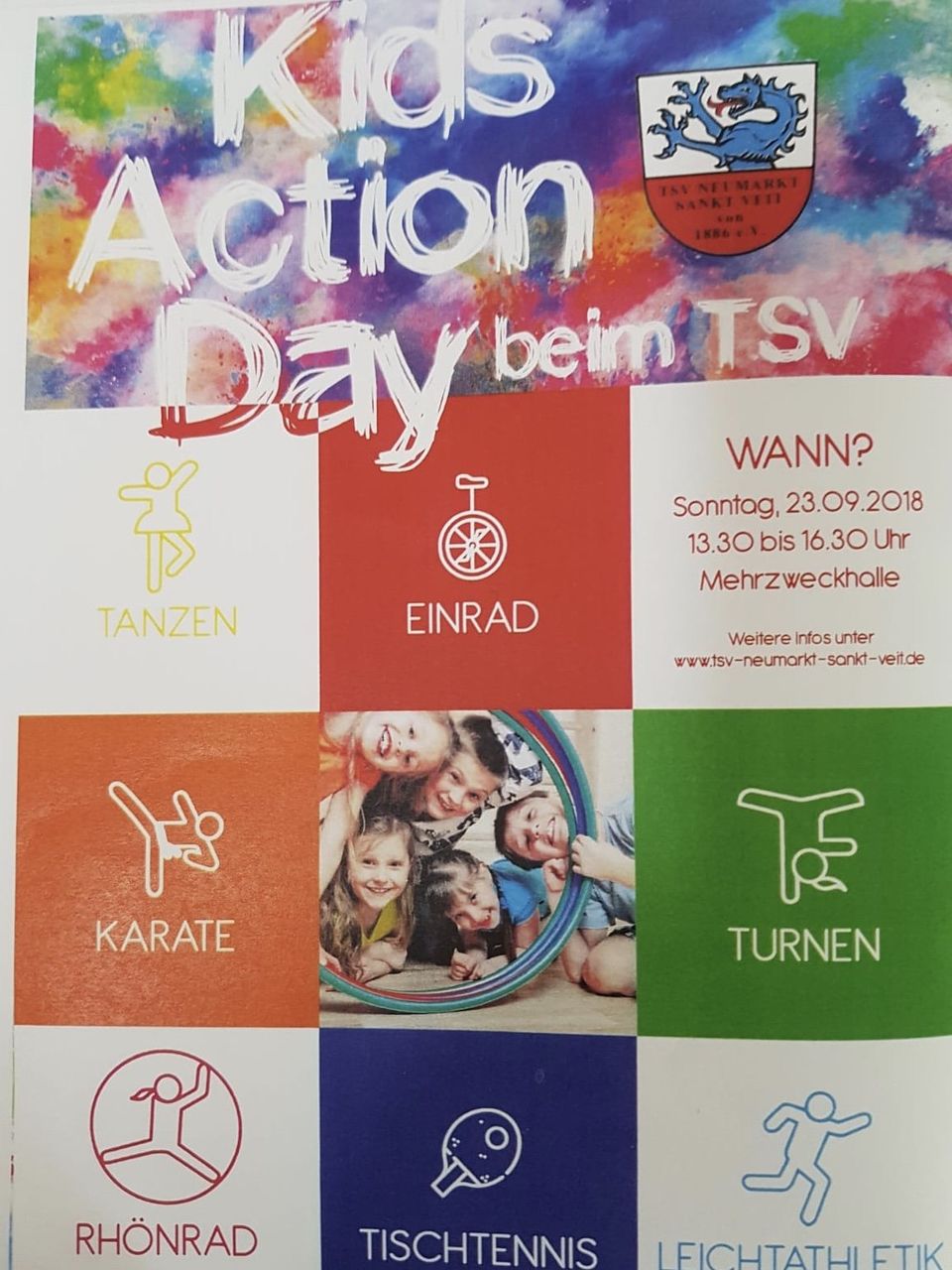 Wir laden alle Familien herzlichst zu unseren "Kids Action Day 2018" am Sonntag den 23.9 ein. Die verschiedenen Abteilungen stellen sich kurz vor und bieten das aktive Mitmachen an! Für Verpflegung ist ebenfalls gesorgt. Wir hoffen auf zahlreiche Besucher. Bitte vergesst nicht Turnschuhe mitzunehmen!